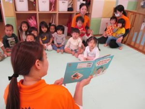 こんにちは! サンライズキッズ保育園観音新町園です 今日の絵本は『かみなりどんがやって...