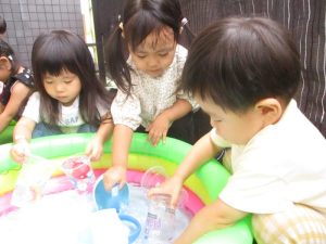 水遊びや感触あそびなど夏ならではの活動を取り入れながら、暑い夏を元気に乗り越えていきたいと思います