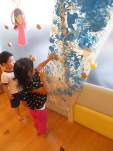 当日に向けて、各クラス七夕飾りを作ったり、みんなで絵の具を使って天の川を作ったりと期待を高めていた子どもたち