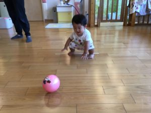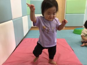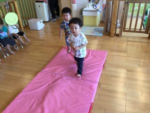 マットの上を保育者の所まで歩いてきてくれました![]()