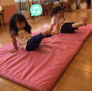 マットの上でV字バランスに挑戦しています![]()