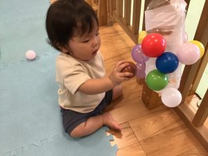 ボールがたくさんくっつく様子が面白かったようで、集中して遊んでいました![]()