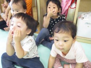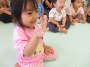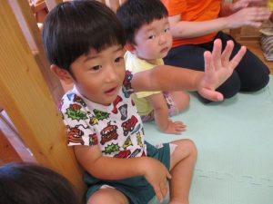 『だ・る・ま・さ・ん・の~』と始まると自然と身体が揺れる子どもたち![]()