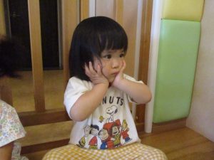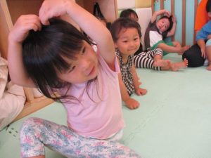 子どもたちもついつい口にしてしまうリズミカルな言葉に合わせて腕をフリフリさせたり・・