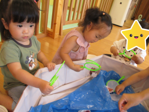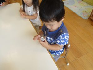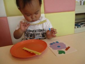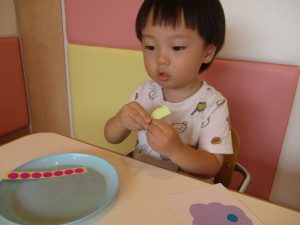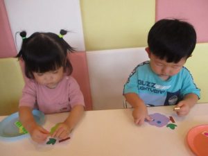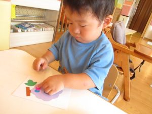 手にシールがくっつき、貼っても貼っても・・な様子も見られましたが、最後まで一生懸命取り組んでいました![]()