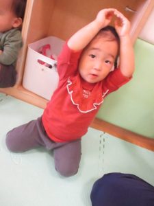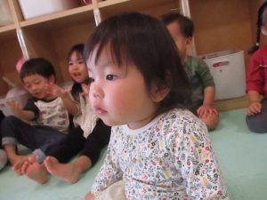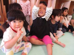 子どもたちに親しみのある食べ物や生き物などが登場し、真似をしながら楽しんでいます