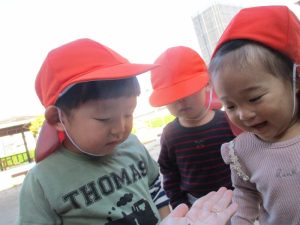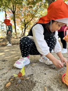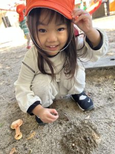 最近は日中でも肌寒さを感じるようになりましたが、子どもたちは戸外に行くことをとても喜んでおり、元気いっぱい遊んでいます![]()