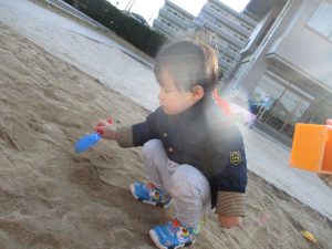 最近、砂場の砂が追加され、砂場あそびもまた盛り上がりを見せています![]()