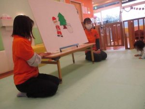 まずはパネルシアター『森のクリスマス』のお話を見ました![]()
