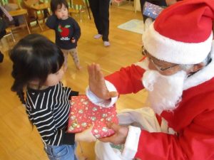 それでも、ちょっぴりドキドキしながらプレゼントを受け取る子どもたち![]()