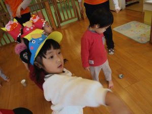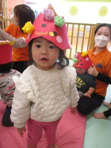 涙が出るお友だちもいましたが、お友だちや保育者が『鬼は外!福は内!!』と元気に豆まきをしているうちに、気持ちを切り替え、一緒に参加することができていました![]()