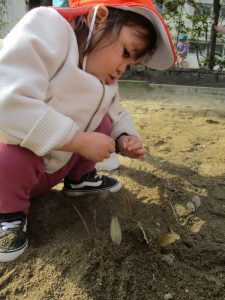 豆をせっせと集めるお友だちも・・![]()