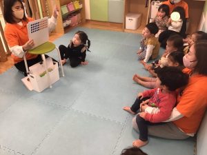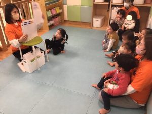 復習という事もあり、カードに登場する名前を覚えて教えてくれる子や、お気に入りのカードが登場し指をさす子もいました![]()