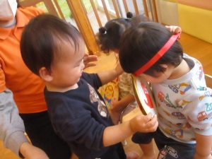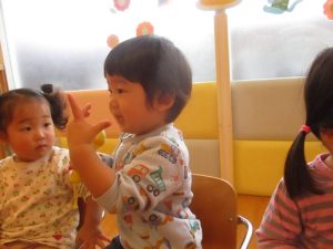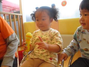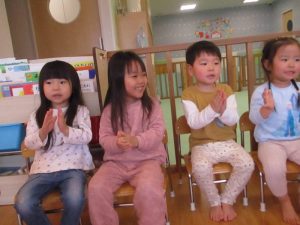 いちご組さん3名の誕生会だったのですが、自分たちが主役と分かっているのか、お部屋を移動すると自主的に椅子に座った子どもたち![]()