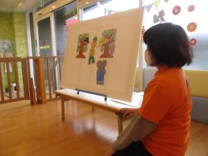うたに合わせて進んでいくストーリーに子どもたちも心地よさそうに身体をゆらゆら~![]()