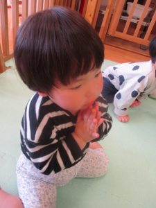 子どもたちも手を伸ばして『パクパク』食べています![]()