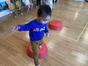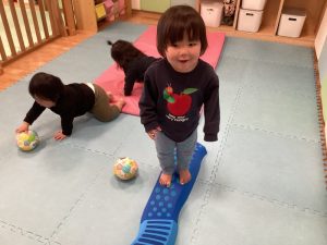 マットやウェーブバランスを使って友だちと楽しく運動をします![]()