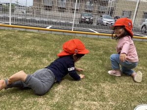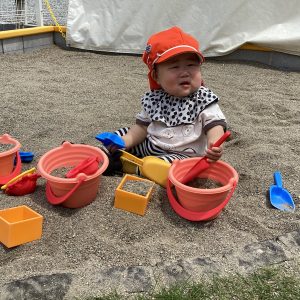 4月時点では、抱っこが大好きで砂場に座って遊ぼうとすると、大粒の涙を流す子どもたちでしたが、今ではほら、この通り