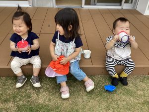 沢山遊んだ後は、お茶を「ぷは〜っ」と美味しそうに飲んで、休憩![]()