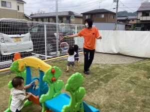 「これやるー」「これなにー❓」「キャハハハ?」園庭には子どもたちの元気な声が響き渡ります?