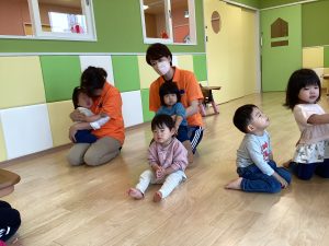 はじまるよ手遊びで子どもたちは保育者の近くにあつまります?