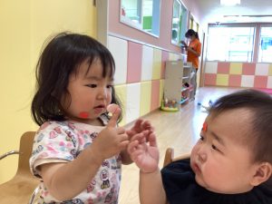 楽しいシール、可愛いお顔にまで貼っちゃいましたよ![]()