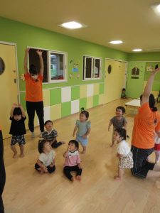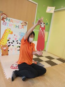 ヨーンと身体を伸ばしたり、プシューと小さくなったりしながら、みんなで身体を動かしました![]()