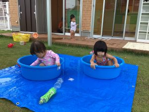 大きなプールも楽しいけれど、タライも人気でしたよ〜