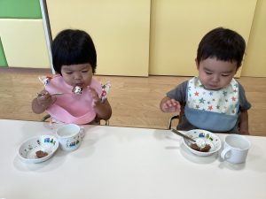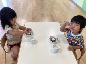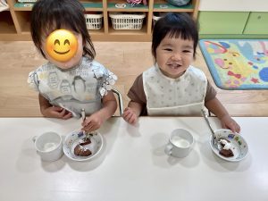 」クリームを口周りにつけながらの、美味しい笑顔が見られました![]()