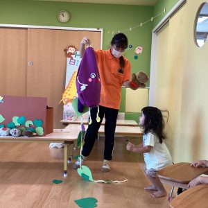 次は、保育者からの出し物。今回は「お芋掘り」でした🍠