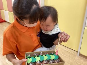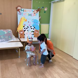 happy birthdayの歌をうたって、お祝いです。可愛らしい手拍子がパチパチと響きます![]()