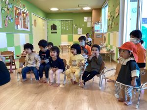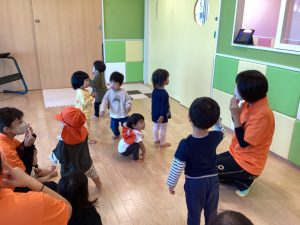 保育者やお友だちと楽しい時間を繰り返して過ごす中で、英語が身近なものになっていくと良いですね![]()