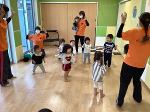 他にも、英語の歌に合わせて保育者やお友だちと一緒に身体を動かすことも大好きです😊
