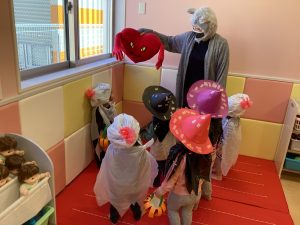 お部屋には、お菓子を持った魔女🧙♀️(園長先生)が待っていました