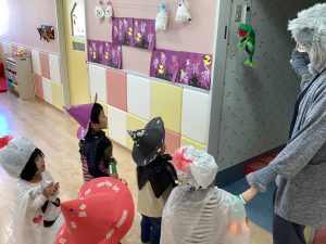 ちょっと怖かったけれど「トリック オア トリート」と大きな声を出していってみると、お菓子をもらうことができました🍭