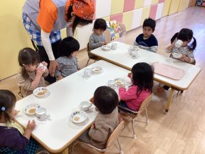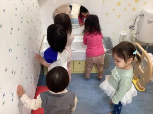 新しく入園されたお子さまもいらしゃいますが、保育園での生活に随分と慣れてきて何でも自分でしたい気持ちが見てとれます。