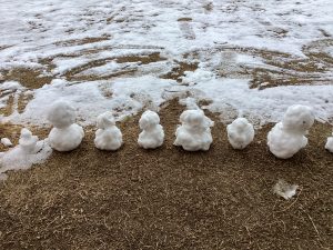 雪を集めて、テラスで小さな雪だるまを作ってみました☃️