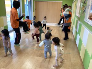 もう一つ「one little finger」の曲に合わせて、手遊びを楽しみながら、「tap tap tap」のフレーズが大好きで小さな指を動かして見せてくれます。