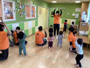 カードが終わると、「stando up,sit down 」の曲に合わせて身体を動かします。