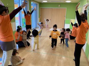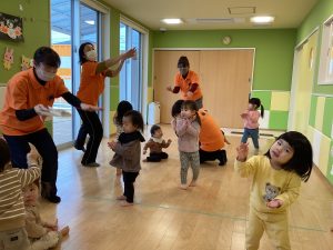 2月は🐰どうぶつ体操1、2、3と、しゅりけん忍者🥷の体操をみんなで楽しんでいます。