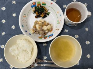 ごはん 味噌汁(キャベツ) 麻婆豆腐 ひじきの和え物