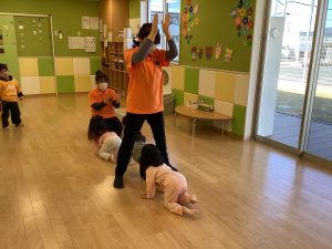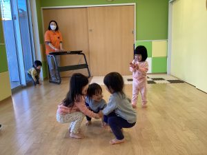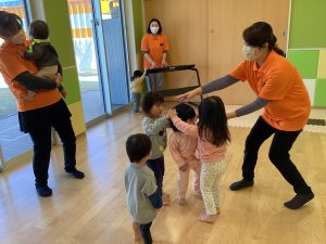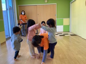 お友だちと回ったり、くぐったりと、喜んで参加する内容の1つです