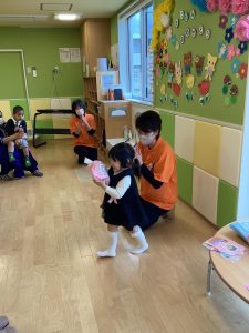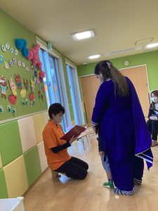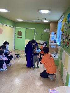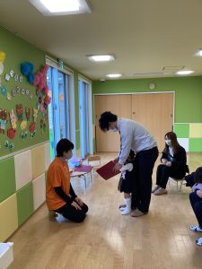 プレゼントをお家の人に渡したり、園長先生からプレゼントをもらったり、だんだんニコニコ笑顔が戻ってきたみたいです![]()