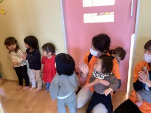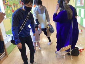 退場する時には大好きなお家の人とおててをつないで、在園児や保育者に見送ってもらいました![]()