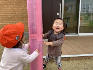 おともだちと「いない いない ばぁ!」「きゃーっ!」「あはははーっ!」