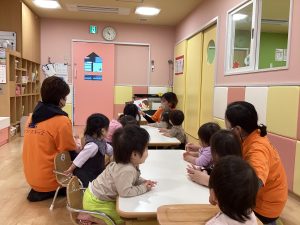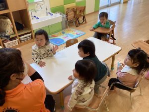 この絵本をたくさん読み保育者が「またお外に行った時にバケツでお山作ろうね」と伝えるとみんな次のお砂遊びも楽しみな様子で絵本を読み終えましたよ![]()