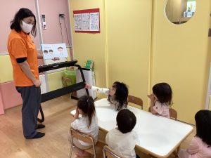 ページをめくると「もこもこ おむつ さようなら♪ ぱぱぱぱ ぱんつ こんにちは♪」ととてもリズミカルな文章に子どもたちも興味津々