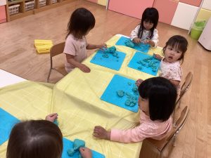 粘土遊びが大好きな子どもたちは粘土が出てくると大喜び