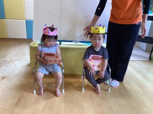 りんご組のお友だちがバースデイカードと冠を手渡してくれましたよ![]()