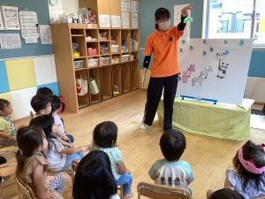 先生からのプレゼントは「だれの傘かなー?」のパネルシアターでした!